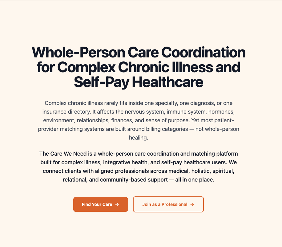 Hi! Tenay here. As you know, I’m building a health website that improves complex illness health outcomes in the U.S.. Complex illnesses include chronic, developmental, congenital, rare, genetic, and event-triggered illnesses. I’m looking for three types of people who are willing to test its features and give me feedback. The whole experience will take one…