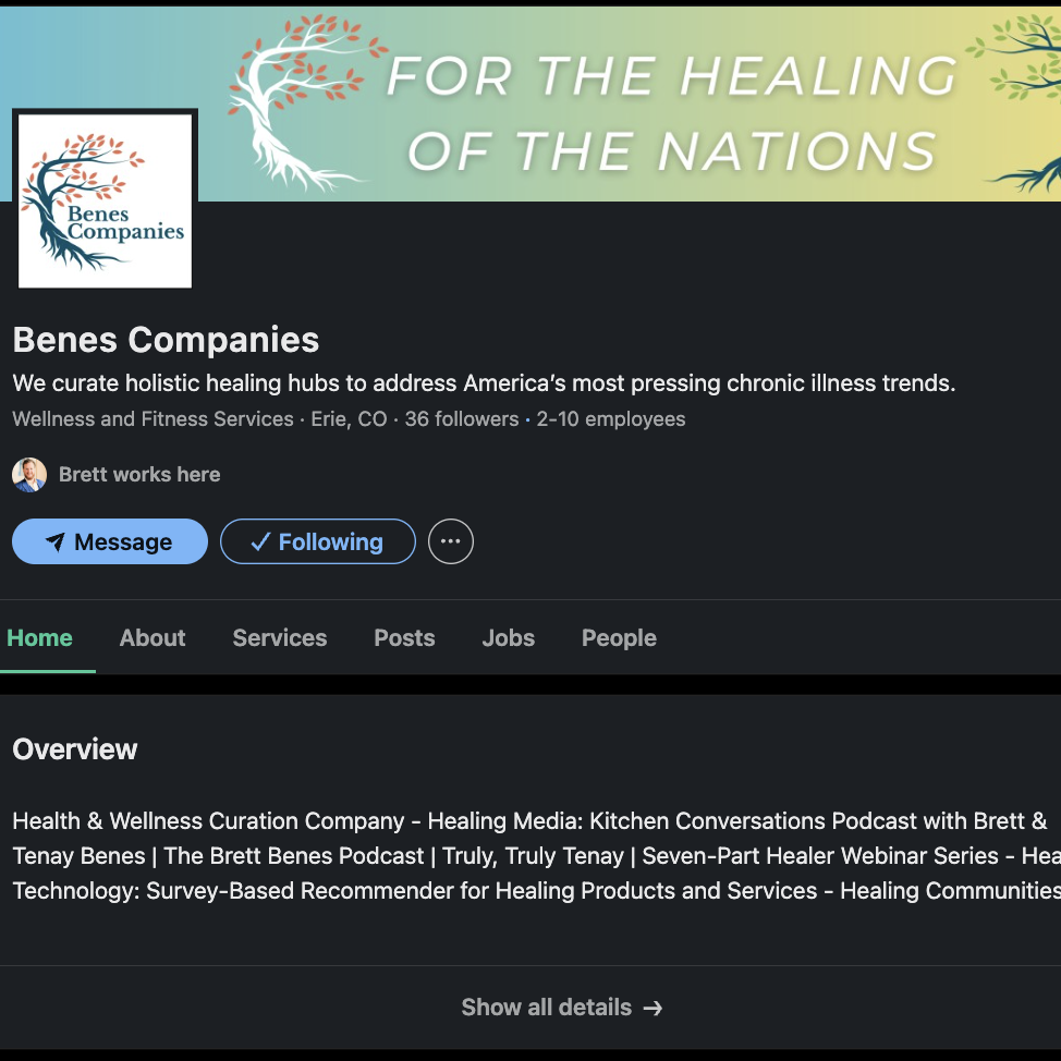 The husband-and-wife team, Brett & Tenay Benes, created Benes Companies to curate solutions for our fragmented U.S. care ecosystem–what we call the health, wellness, and human services sectors– to better help complex illness sufferers navigate their healing journeys and improve their health outcomes.