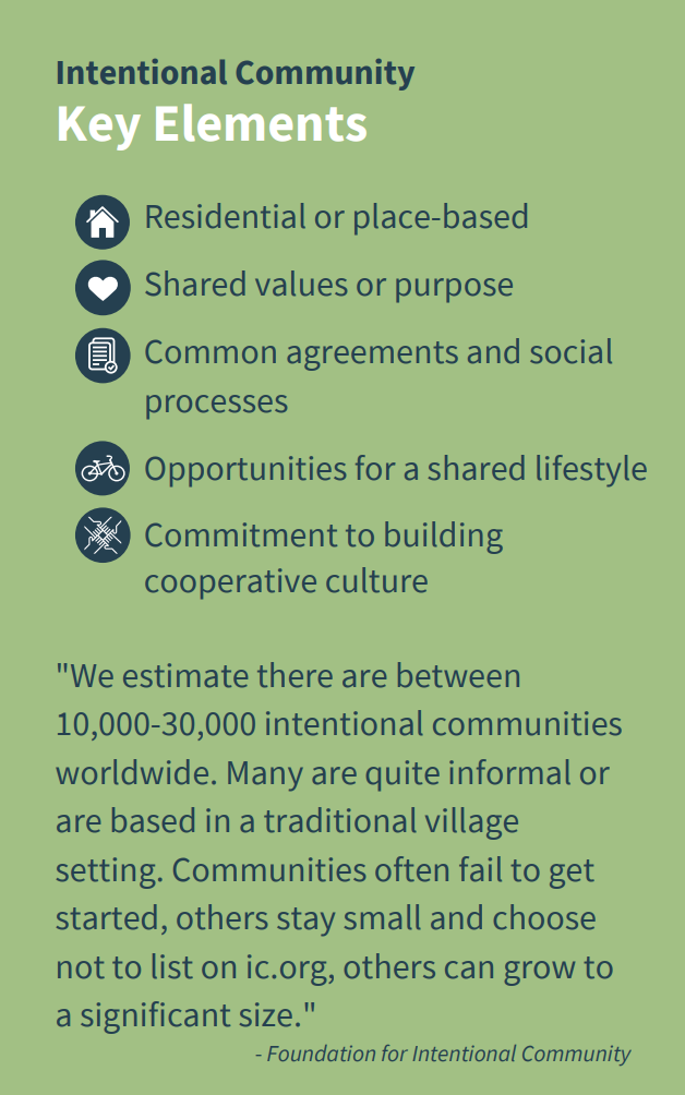 | Communities are not expected or advertised to be utopian, only to reduce some of the lifestyle stressors of modern-day living that can prevent their mission | Yes | Yes | Yes | No |